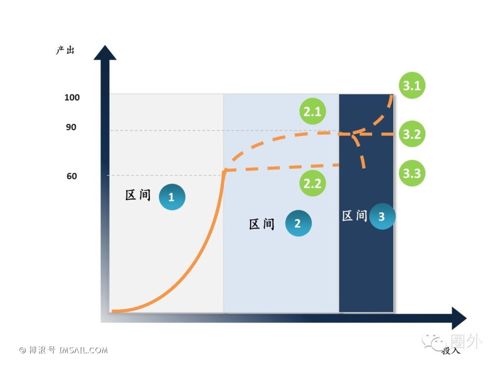 “T型人才”的那条竖线“|”的长度,也决定了你所获得资源回报的丰厚与否。在区间一,有70%左右的人不费吹灰之力就拿到了60分,但你身边也有成千上万的人和你站在一起;如果你能再加把油继续努力,你就可以超越这70%人,进入区间二,享受更大的回报。至于是否继续挑战万里挑一的“区间三”,则要因人而异,根据自身情况去做决定!