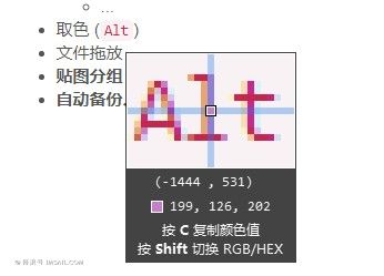 强大的窗口取色功能(可切换RGB/HEX模式),一键复制