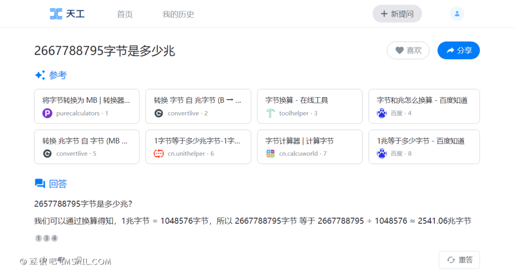 昨天,国内昆仑万维公司推出了“天工AI搜索”。这也是在继百度AI搜索之后,国内厂商推出的一款新产品。刚好今天要处理一个换算的问题,所以找了几个AI对比了一下他们计算的准确度。真是,不测不知道......
