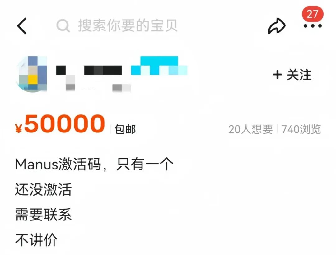 Manus的出道方式堪称“内娱选秀级操作”:想用我?先搞个天价邀请码!官方声称“服务器容量有限”,但网友发现,二手平台上邀请码价格从5万炒到10万,甚至有人直接开价“卖码换房首付”。这波操作让黄牛直呼内行:“原来AI圈才是炒作的祖师爷!”