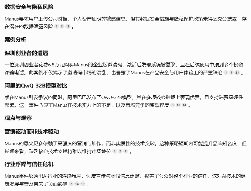 Manus的这场“AI真人秀”,看似是技术圈的热闹,实则揭开了国产AI发展的AB面:一边是资本狂飙下的浮躁与泡沫,一边是技术人“死磕到底”的野心与不甘。有人调侃它是“PPT造AI2.0版”,也有人为它辩护:“总得有人先试水,才知道深水区有没有鲨鱼。”