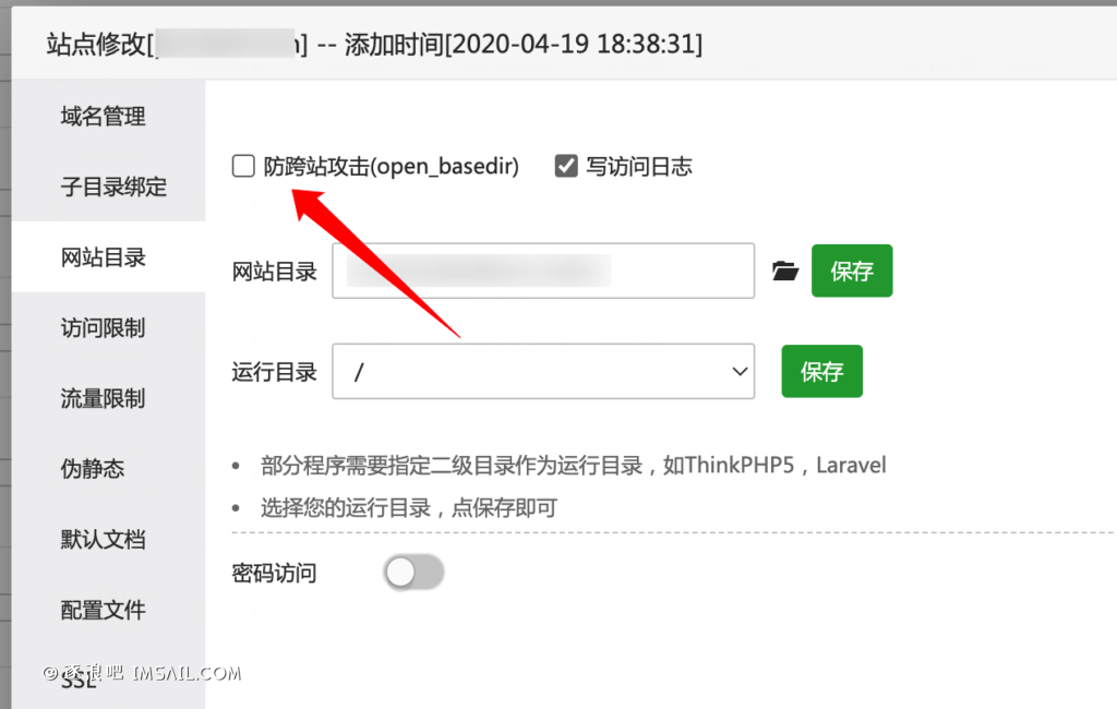 //默认值为1,配置为2表示在前端输出错误原因。调试完之后记得改回去2、提示 something went wrong 或者 realpath(): open_basedir restriction in effect. File(...) is not within the allowed path(s),这是宝塔面板的防跨站设置造成的,可以进入宝塔对应网站的站点设置,把防跨站的对勾去掉就可以了。