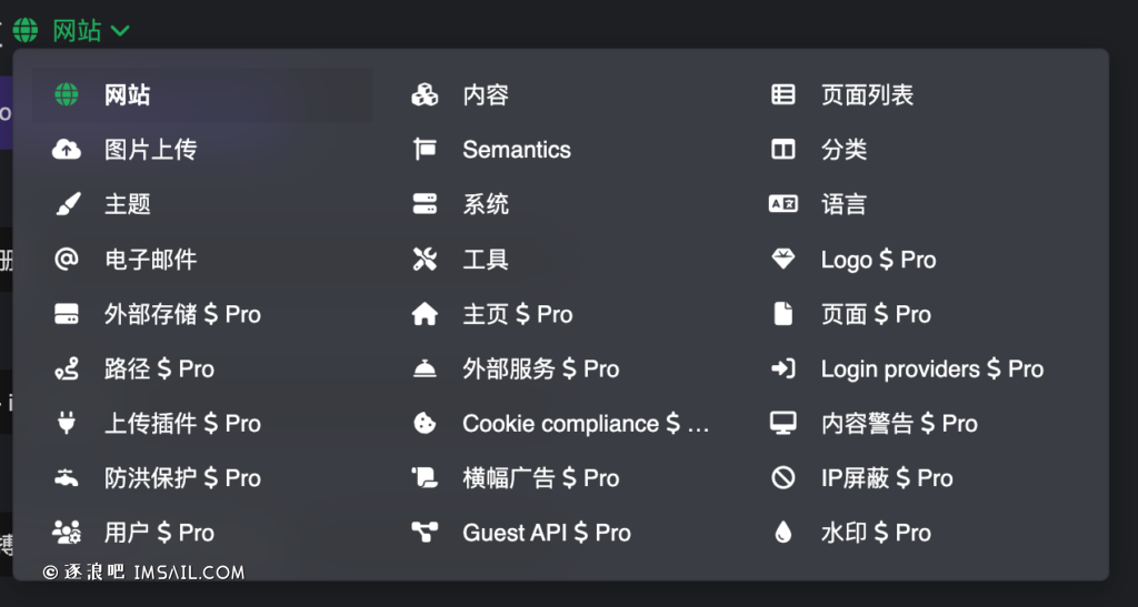 最后吐槽一下v4.0版的chevereto,以前免费版的好多功能在4.0版本中都放进了付费模块(下图里带“$ Pro”标识的都是付费版才可以使用的功能),免费版只剩下一些基础的功能,就连logo都不能自定义了。吃相实在有点难看。如果实在想用的话,可以试试开心版(支持正版,不提倡破//解哦~)
