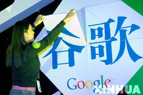 4月12日,Google公司员工展示Google全球中文名称“谷歌”。