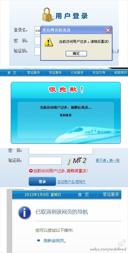 由铁道部下属机构研发的网上售票平台12306网站,在2012年春运前期的售票高峰首次面临极端考验,并被证实无法胜任。
