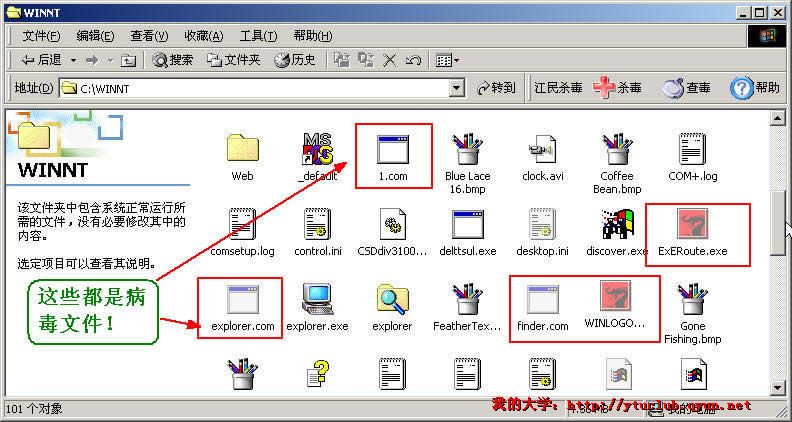 这些病毒文件绝大多数都是显示为系统文件和隐藏的,所以要在文件夹选项里打开显示隐藏文件。