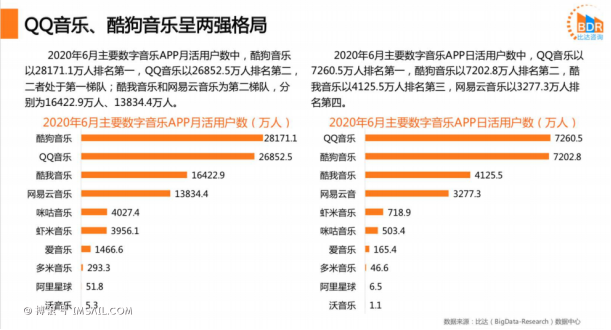 从比达咨询最新的数据来看,2020年上半年腾讯系三大在线音乐平台的日活和月活都遥遥领先其他平台,虾米音乐跌出前四,在月活上甚至不及咪咕音乐。
